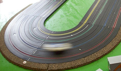 | This is another shot from a race. A lone car tears through