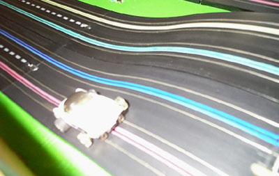 | Scott Keck's bug chases someone's 250 under the bridge.
