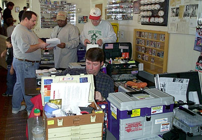 | Joe, John C. Hoopes, Tom, and Ken tinker in the pits.
