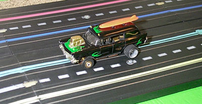 | Here's a good look at this car. Surfboard, blower, flames